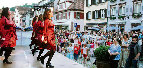 Wieder beteiligte sich der Gewerbeverein mit bis in den späten Abend geöffneten Geschäften und vielen speziellen Angeboten an der Veranstaltung, die Gaby und Frieder Heizmann zusammen mit Dorothea Herrmann und Norbert Stötzel vor sechs Jahren ins Leben gerufen haben. Mit großem Erfolg. Bei angenehmen Temperaturen herrschte am Samstagabend auch im Städtle ausgelassene Stimmung. Vor dem Rathaus erklangen noch einmal irische Weisen, und die drei Tanzgruppen ernteten für ihre temperamentvollen Tänzen frenetischen Applaus.